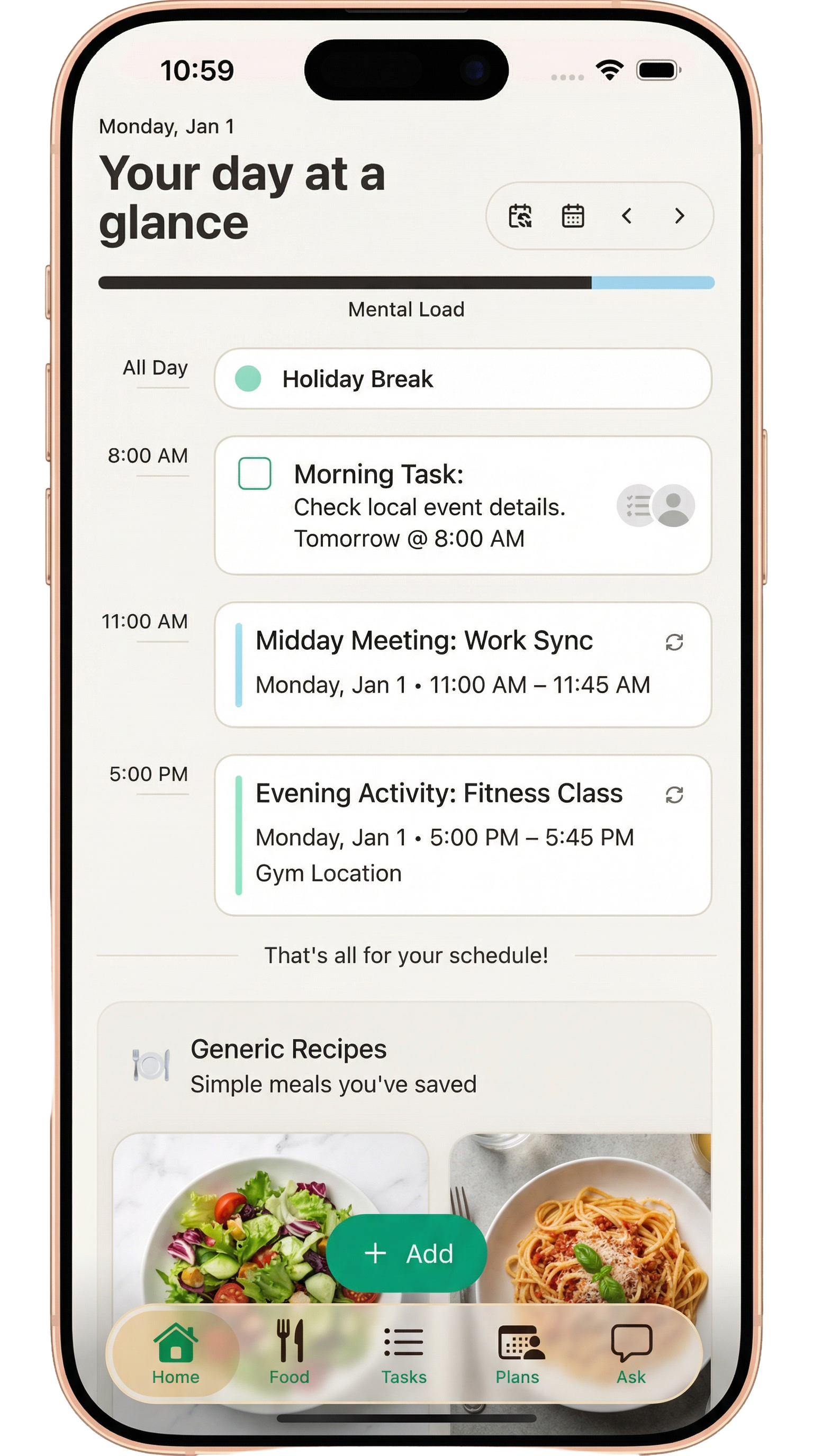 Automations run while you sleep. Meal plans appear Saturday mornings. Weekly prep lists ready Sunday nights.